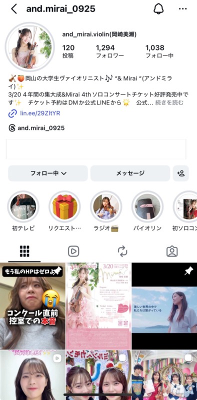 岡崎美瀬様は、現役大学生ヴァイオリニスト『&Mirai』様として